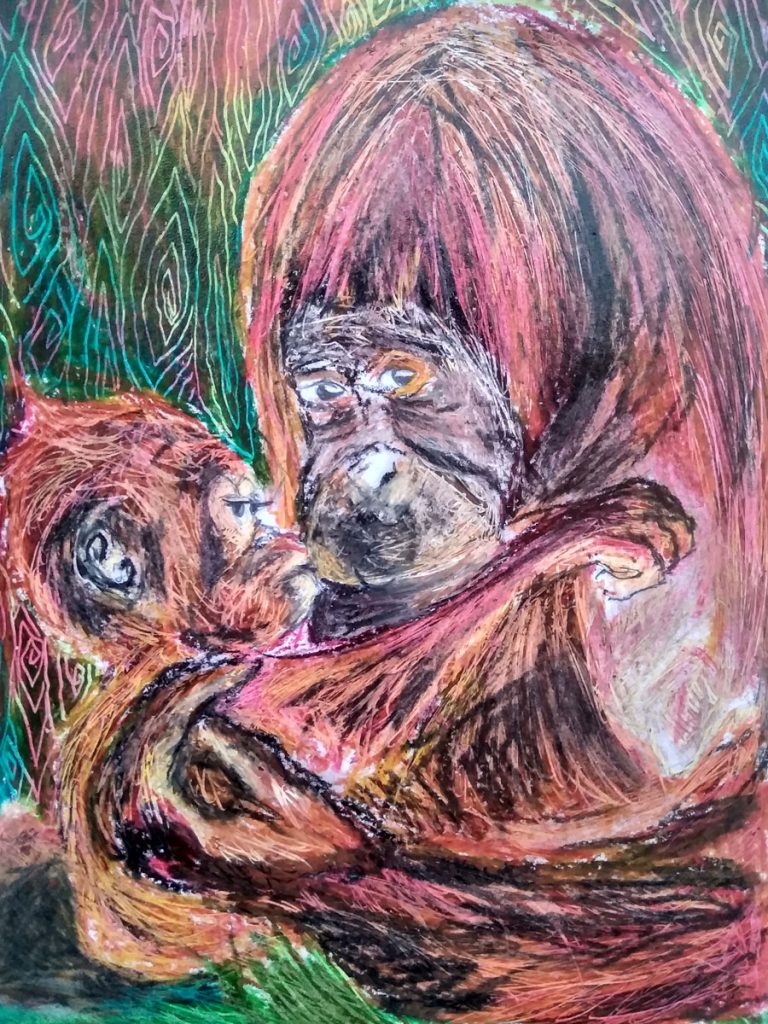 Karya ini saya buat ketika berita di sosial media tahun 2020 dimana hutan adat dibabat secara besar besaran di kalimantan dan papua,dimana ketika saya membaca komentar dari beberapa orang di postingan tersebut kebanyakan mempertanyakan masyarakat adat yang tinggal di sana mau di tempatkan dimana?dan dari beberapa orang yang berkomentar di postingan tersebut tidak ada yang bertanya “lalu hewan endemik dari hutan tersebut apakah di berikan rumah tinggal?”lalu jika iya timbul pertanyaan pada dalam diri saya sendiri apakah harus di kebun binatang?,apakah nanti anak dan cucu saya harus melihat binatang binatang liar ini tersiksa dan tidak bebas bergerak dengan leluasa(bebas)?apakah binatang endemik ini bisa bertahan di suatu wilayah yang baru dan dengan ekosistemnya pasti berbeda dari tempat sebelumnya yaitu hutan?