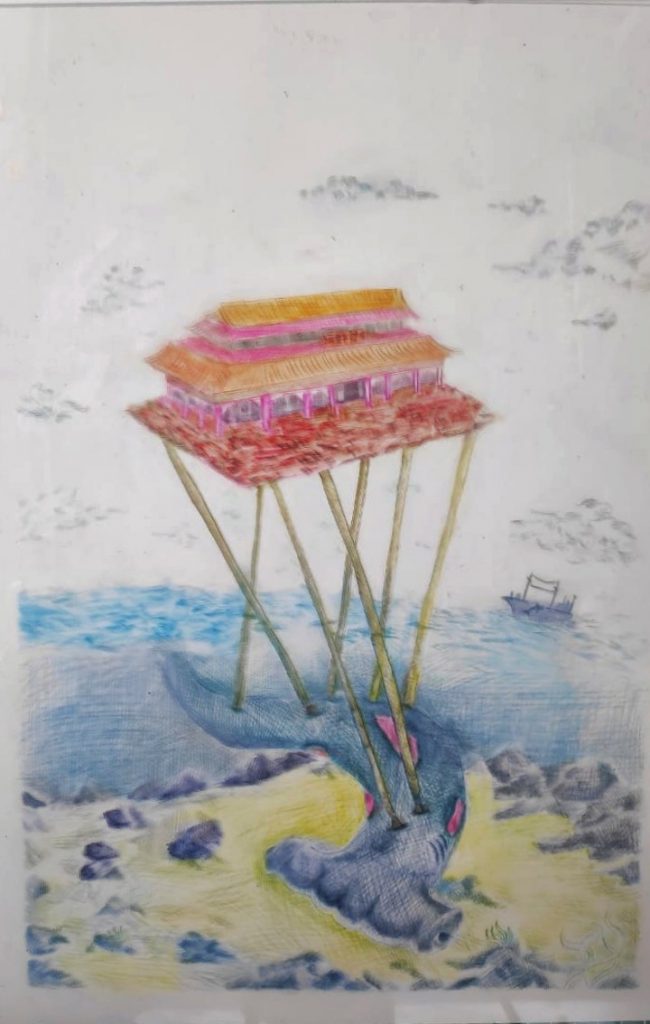 Karya ini saya buat karena bagi saya sup sirip ikan hiu bukanlah budaya yang pantas untuk dipertahankan di masa sekarang ini, melihat banyaknya nelayan-nelayan sadis yang menenggelamkan hiu tersebut kembali ke laut dalam keadaan masih hidup. dengan objek hiu martil tanpa sirip-siripnya, saya ingin menggambarkan sebuah tragedi yang mengerikan karena hiu martil memiliki sirip yang panjang dan besar, dan itu berarti harga siripnya akan semakin mahal ketika dijual.