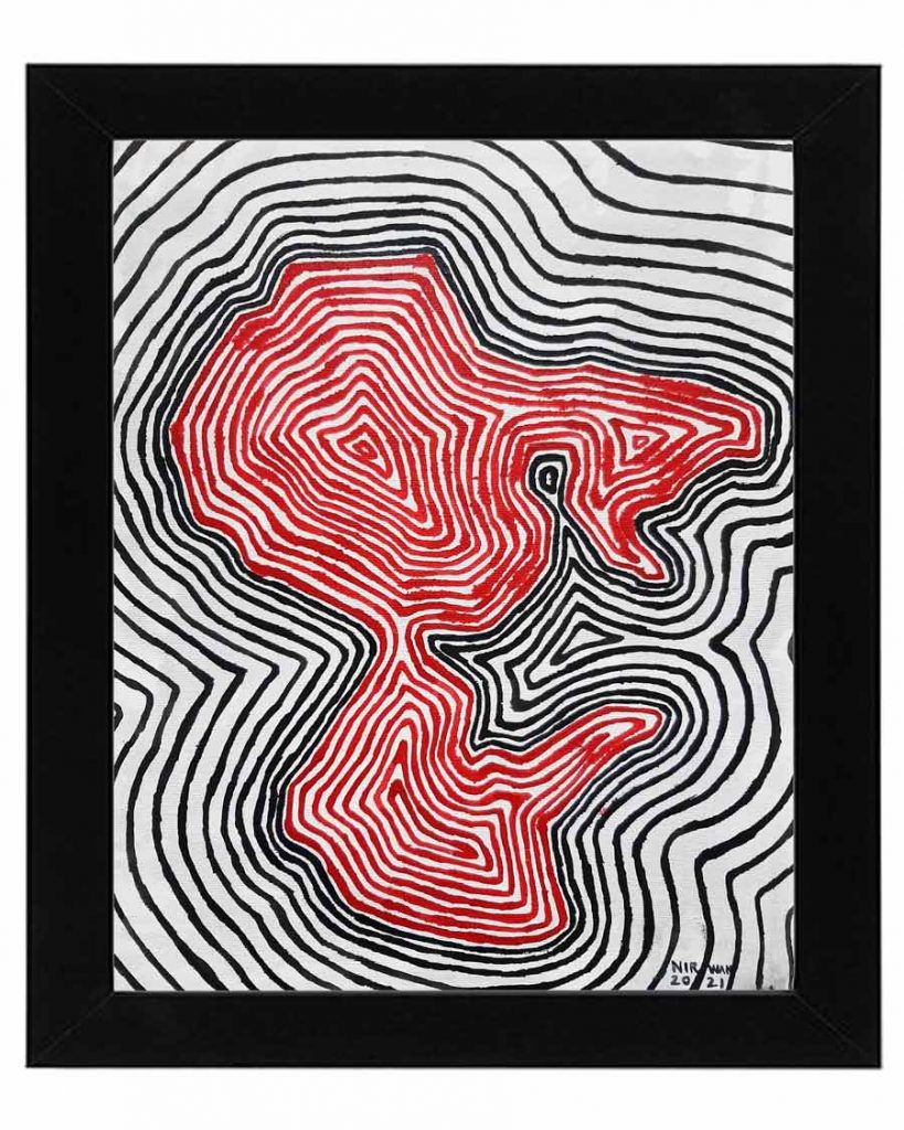 Karya ini merupakan penggambaran wilayah Tempat Pembuangan Akhir (TPA) Bantar Gebang, Bekasi melalui pengamatan saya menggunakan Peta Digital. Saya gambarkan dengan cara pengulangan ritme garis berwarna merah sebagai identitas kekuatan yang berbahaya, yang mana garis tersebut adalah tiruan dengan mengikuti tepi wilayahnya. Dalam capaiannya, saya menjadikan penggambaran tempat tersebut yang berlokasi bagian tenggara Jakarta ini, saya tangkap sebagai sisi simbol konsumerisme melalui sampah-sampah hasil dari pada manusia Jakarta. Tempat ini yang mulai beroprasi dari tahun 1986 yang dibangun diatas kolam-kolam raksasa berukuran ratusan hektar bekas pengerukan tanah dengan kemudian kondisi saat ini dipenuhi tumpukan sampah berasal dari Wilayah DKI Jakarta. Garis-garis pada karya ini merupakan obsesi saya dalam berimajinasi seperti halnya peta topografi dalam saya membaca sebuah tumpukan sampah yang menggunung. Dapatkah kita sebagai manusia peduli dengan sampah, setidaknya mengurangi penggunaan sampah?