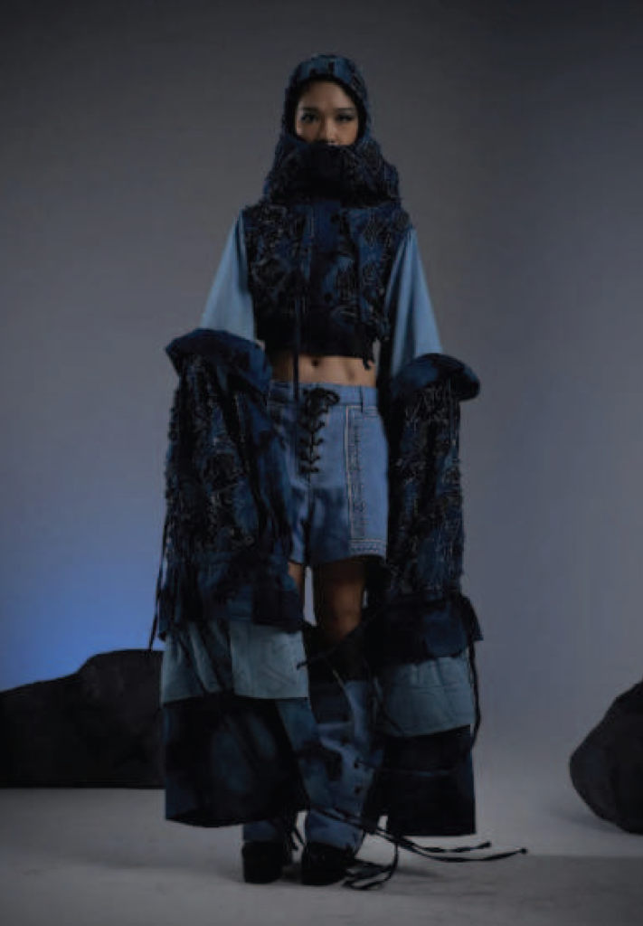 Eksperimen kain denim dengan teknik bleaching,stitching, cutout, dan embroidery.