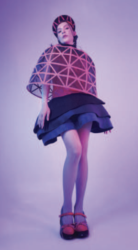 Nightscape Symphony, merupakan judul busana yang terinspirasi dari suasana malam di sky garden .Love on Top. Pondok Indah Mall. Struktur kubah geometris juga permainan warna lampu berwarna fuschia dan warna disekitar lokasi yang gelap menciptakan kontras visual yang menarik. Dan diwujudkan pada busana artwear ini berupa bentuknya yang bulky, garis yang geometris, dan warna yang gelap lalu kontras dengan warna fuschia.
